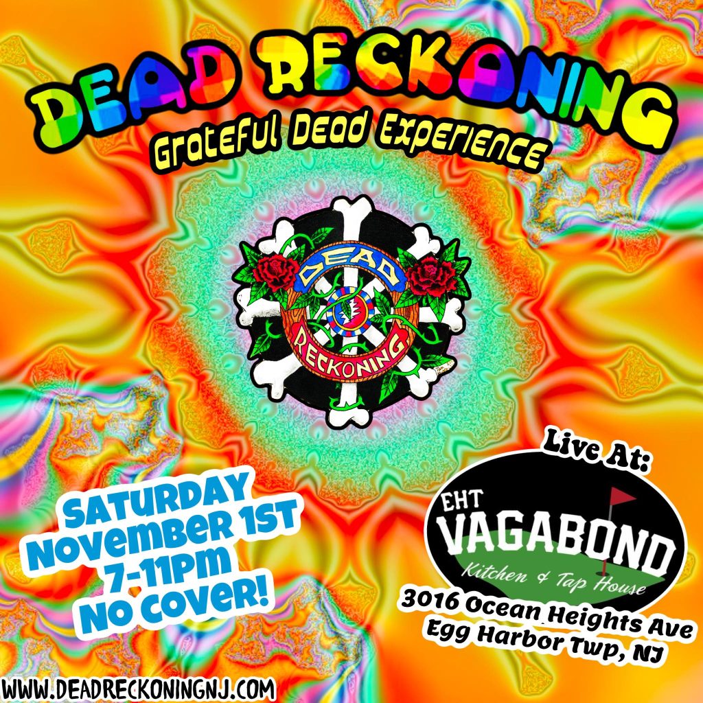 - Saturday, Nov 1st – guitar & vocals w-Dead Reckoning (Grateful Dead tribute). Vagabond Kitchen & Tap House, 3016 Ocean Heights Ave, Egg Harbor Twp, NJ 08234. No cover. 7 pm.