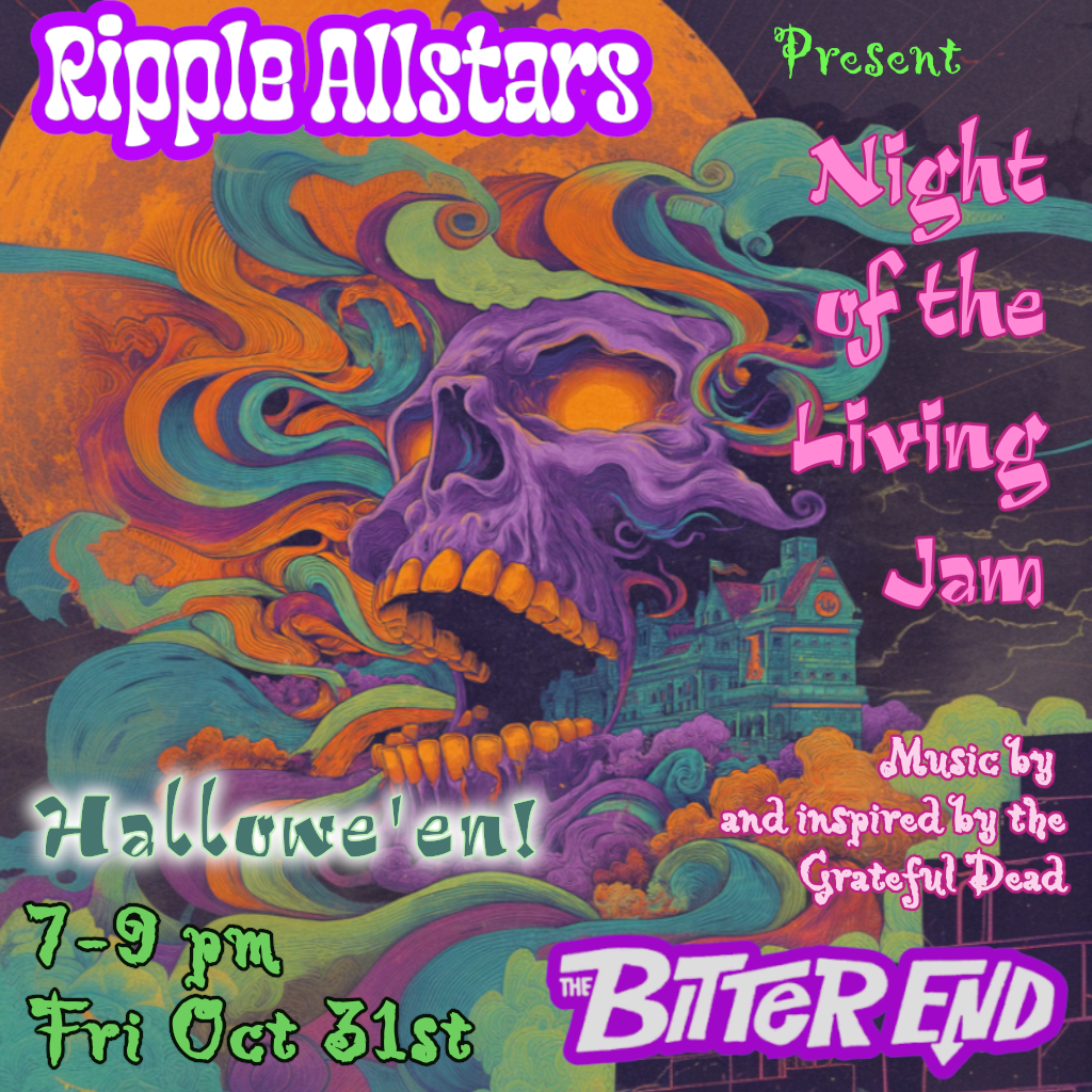 - Friday, Oct 31st – special Halloween show w-Ripple All-Stars (Grateful Dead celebration) @ the Bitter End, 147 Bleecker St, NY, NY, 7-9 pm. Tickets $17.58.